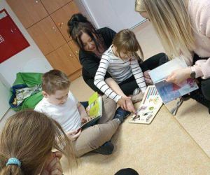Najmłodsi uczestnicy z uwagą wysłuchali historii Fenka z opowiadania pt. „Fenek. Zabawy na śniegu” oraz z dużym zainteresowaniem przeglądali książki – zarówno tradycyjne, jak i interaktywne.