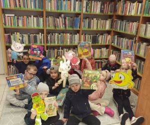 Grupa „Zajączki” z Przedszkola Publicznego nr 2 w Łęcznej to kolejna grupa, która odwiedziła naszą bibliotekę w ramach obchodów Tygodnia Bibliotek. Zajęcia poświęcone zostały Kici Koci - uwielbianej przez dzieci postaci wykreowanej przez Anitę Głowińską. Przedszkolaki z uwagą wysłuchały bajki „Kicia Kocia w bibliotece”, po czym każde z nich odnalazło na półkach bibliotecznych książeczkę wraz z dołączoną figurką bohaterki dzisiejszego spotkania. Zwieńczeniem zajęć było wspólne zdjęcie, które rozświetlały uśmiechnięte buzie naszych najmłodszych czytelników.