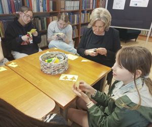 W dniu 16 kwietnia 2025 r. Bibliotekę Główną odwiedziła klasa 4E ze Szkoły Podstawowej nr 2 w Łęcznej wraz ze swoją wychowawczynią. Uczniowie wzięli udział w zajęciach tematycznych poświęconych Świętom Wielkanocnym. Dzieci dzieliły się swoimi skojarzeniami związanymi z Wielkanocą, czytały wiersze o tej tematyce oraz obejrzały film przedstawiający wielkanocne tradycje. W dalszej części spotkania uczniowie rozwiązywali krzyżówki z hasłami związanymi ze świętami oraz szukali różnic na wielkanocnych ilustracjach. Nie zabrakło również aktywności ruchowych – dzieci z entuzjazmem wzięły udział w zawodach polegających na przenoszeniu czekoladowych pisanek na łyżkach. Zajęcia przebiegły w radosnej, świątecznej atmosferze.
