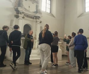 Na zakończenie młodzież miała okazję zwiedzić wnętrza łęczyńskiej Synagogi, znajdującej się tuż obok Biblioteki. Pan Matraszek opowiadał o historii społeczności żydowskiej mieszkającej w Łęcznej w czasie wojny.