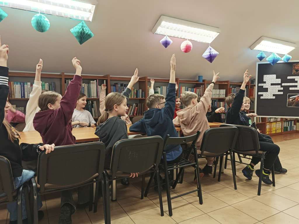 Podczas tegorocznych obchodów andrzejek nasza Biblioteka przy ul. Bożnicznej 21 gościła klasę 4e ze Szkoły Podstawowej nr 2 w Łęcznej wraz z wychowawczynią. Uczniowie brali udział w specjalnie zorganizowanych andrzejkowych zabawach. Na początek dzieci zmierzyły się z krzyżówką i wykreślanką, w których pojawiły się hasła i wyrazy związane z tradycjami andrzejkowymi. Następnie przyszedł czas na to, co w andrzejki najważniejsze – wróżby! Uczniowie poznawali imiona przyszłego męża lub żony, sprawdzali, kto pierwszy wyjdzie za mąż lub ożeni się, a także próbowali szczęścia w rzucie monetą do miski z wodą, który według zwyczaju przepowiada powodzenie w najbliższym czasie. Spotkanie zakończyła zabawa ruchowa – wspólny układ taneczny, który dostarczył wszystkim mnóstwo śmiechu i pozytywnej energii.