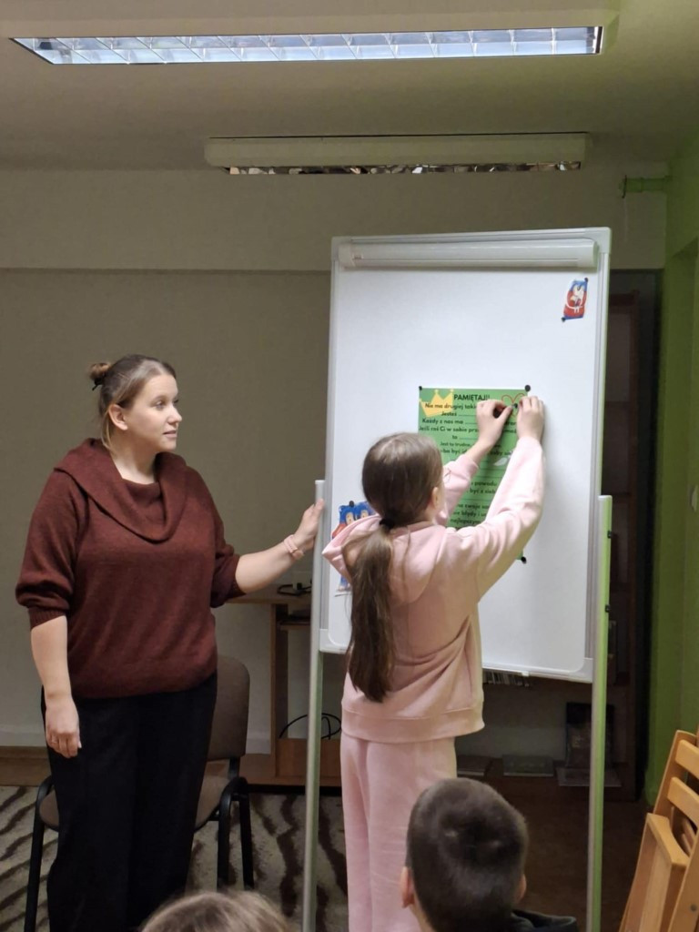 Podczas dzisiejszych zajęć, inspirowanych książką „Jesteś ważny, Pinku”, razem z uczniami klasy III B ze Szkoły Podstawowej nr 4 rozmawialiśmy o akceptacji siebie oraz o tym, jak ważne jest bycie dla siebie dobrym, uważnym i życzliwym. Dzieci zastanawiały się, co to znaczy być sobą, dlaczego każdy z nas jest ważny i wyjątkowy oraz jak możemy dbać o swoje emocje i poczucie własnej wartości.