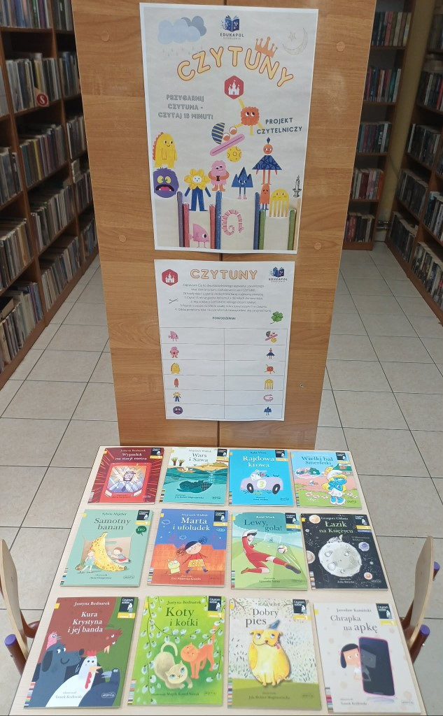 Z radością informujemy, że nasza biblioteka przystąpiła do Ogólnopolskiego projektu czytelniczego Czytuny. Jest to inicjatywa promująca czytelnictwo wśród dzieci rozpoczynających swoją przygodę z czytaniem. To wyjątkowe wyzwanie czytelnicze podjęły razem z nami : grupa Archanioły z Przedszkola Aniołek oraz grupa O D ze Szkoły Podstawowej nr 2 w Łęcznej. Wypożyczając książki w naszej bibliotece dzieci dostają bilety uprawniające ich do odbioru kart kolekcjonerskich podczas zwrotu wypożyczonej, a co najważniejsze p r z e c z y t a n e j książeczki. Do zebrania są trzy serie kart. Ruszyliśmy z realizacją serii pierwszej. Wszystkim uczestnikom projektu życzymy udanej zabawy wraz z wesołymi „czytunami”.