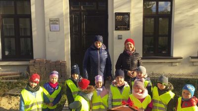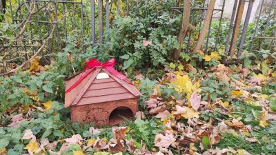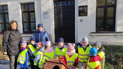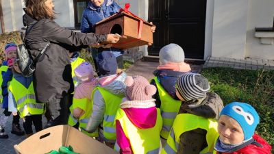 Przedszkolaki obdarowały bibliotekę domkiem dla jeża.