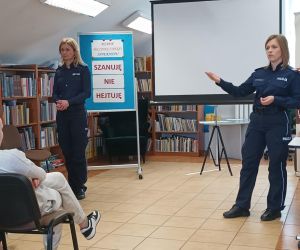 Spotkanie rozpoczęło się wyświetleniem teledysku promującego Dzień Bezpiecznego Internetu 2025, który wprowadził uczestników w tematykę bezpieczeństwa w sieci. Następnie Panie policjantki omówiły zagrożenia związane z korzystaniem z Internetu, wyjaśniając pojęcia związane z przemocą online oraz zasady bezpiecznego poruszania się w sieci.