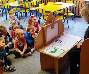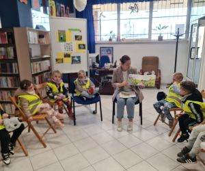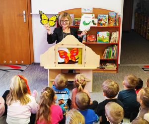z Przedszkola Mali Odkrywcy wysłuchały książki autorstwa Erica Carle „Bardzo głodna gąsienica”. Przedszkolaki poznały cykl rozwojowy motyla oraz znaczenie prawidłowego odżywiania. Maluchy aktywnie uczestniczyły w spotkaniu i skorzystały z możliwości wypożyczenia książeczek do domu.