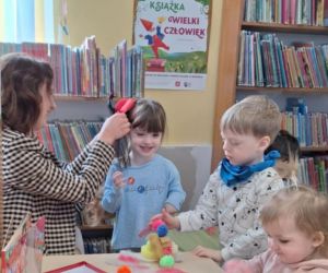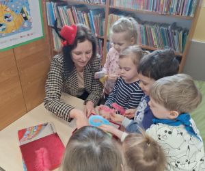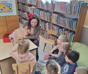 Dnia 10 marca Filia nr 1 miała przyjemność gościć dzieci z Przedszkola Niepublicznego Mali Odkrywcy. Bibliotekarka, p. Monika, przeczytała dzieciom wiersz autorstwa Agnieszki Glinko pt.” Ciotka Klotka”. Maluchy słuchały wiersza z ogromnym zainteresowaniem, a przygotowane przez bibliotekarkę rekwizyty były doskonałym dopełnieniem głośnego czytania. Dzieci nie tylko słuchały, ale również aktywnie uczestniczyły w zabawie. Przedszkolaki miały możliwość testowania przyborów na gilgotki z „Sekretnego pudełka Ciotki Klotki”.