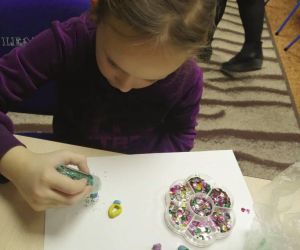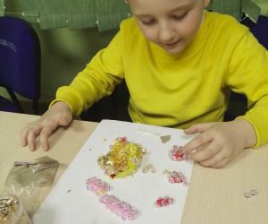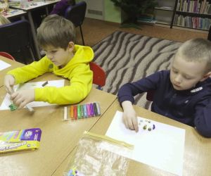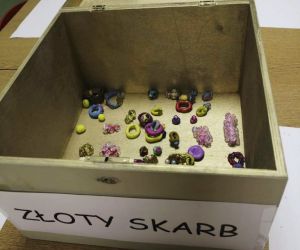 W piątek 7 lutego uczniowie klasy 0 „b” uczestniczyli w warsztatach plastycznych „Złoty skarb”. Dzieci lepiły z plasteliny skarb według własnego pomysłu. Następnie wkładały prace do skrzyni skarbów przyniesionej przez panią wychowawczynię. Po zakończonej pracy, uczniowie obejrzeli baśń H. Ch. Andersena „Złoty skarb” i porównali swoje skarby z tym z baśni. Ku ich zaskoczeniu baśniowym skarbem nie okazały się klejnoty…