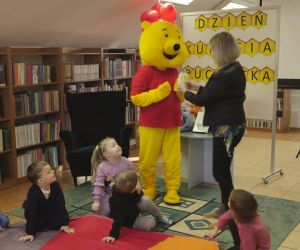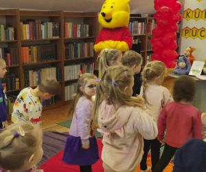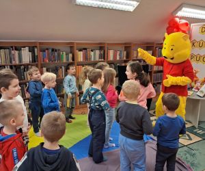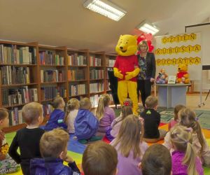W dniach 16 stycznia i 20 stycznia 2025 roku w Bibliotece przy ul. Bożnicznej 21 odbyły się zajęcia z okazji Dnia Kubusia Puchatka, na które przybyły dzieci z grup: „Słoneczka” i „Muchomorki” z Przedszkola Publicznego nr 1 w Łęcznej. Przedszkolaki wzięły udział w zajęciach edukacyjnych, które wprowadziły je w radosny świat Kubusia Puchatka i jego przyjaciół ze Stumilowego Lasu. Zajęcia zostały zorganizowane z okazji obchodzonego 18 stycznia Dnia Kubusia Puchatka. Spotkania rozpoczęły się zagadką, która natychmiast wzbudziła zainteresowanie dzieci: „To bardzo znany miś, którego przyjacielem jest chłopiec o imieniu Krzyś...”. Dzieci błyskawicznie odpowiedziały, że chodzi o Kubusia Puchatka. Następnie prowadząca, Barbara Wójcik, powitała przedszkolaków w towarzystwie samego Kubusia Puchatka, którego rolę odegrała Anita Rządkowska. Kubuś serdecznie powitał dzieci, zabierając je w podróż do świata przyjaźni i radości. W dalszej części spotkań dzieci poznały historię Kubusia Puchatka oraz jego wiernych przyjaciół – Prosiaczka, Królika, Sowy, Tygryska i innych mieszkańców Stumilowego Lasu. Dowiedziały się także, jak powstała postać Kubusia i jakie są jego przygody. Zajęcia miały także wymiar ruchowy. Przedszkolaki naśladowały Kubusia Puchatka, skacząc w górę i głaszcząc się po brzuszkach, co wywołało mnóstwo śmiechu. Kolejną atrakcją było wysłuchanie książki „Ostrożnie Puchatku”, którą przeczytała dzieciom bibliotekarka. Po tej lekturze maluchy wzięły udział w Puchatkowej gimnastyce, wykonując ćwiczenia przy piosence „Jedna łapka, druga łapka”. W trakcie spotkań dzieci miały okazję wziąć udział w różnorodnych zabawach, które dostarczyły im wiele radości. Wśród atrakcji znalazły się zagadki ze Stumilowego Lasu, które pobudziły wyobraźnię młodych uczestników, a także gra polegająca na przypinaniu ogona Kłapouchemu – oczywiście z zawiązanymi oczami. Dużo śmiechu wywołały także zabawy z Chustą Klanzy, które angażowały całą grupę. Na zakończenie spotkań dzieci tańczyły z Kubusiem Puchatkiem do piosenki „Kumpli weź”, a bibliotekarka wręczyła nauczycielkom Dyplom Przyjaciół Kubusia Puchatka, który otrzymała cała grupa. Dzieci dostały także kolorowanki związane z Kubusiem Puchatkiem, a na koniec zajęć wszyscy zostali poczęstowani cukierkami. Spotkania z Kubusiem Puchatkiem były pełne radości, edukacji i zabawy, które na długo pozostaną w pamięci dzieci. Była to również doskonała okazja do rozwijania wyobraźni maluchów oraz wspólnego spędzenia czasu w miłej atmosferze.