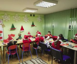 W dniach 4-6 grudnia w Filii nr 3 odbyły się spotkania Mikołajkowe dla uczniów Szkoły Podstawowej nr 4 w Łęcznej. Dzieci z klas 0 e oraz 0 b obejrzały filmy edukacyjne oraz wysłuchały legendy o biskupie Mikołaju. Uczniowie wzbogacili swoją wiedzę dotyczącą tradycji związanych ze świętym Mikołajem w różnych krajach – lektura książki „Świat w obrazkach. Boże Narodzenie” Emilie Beaumont. Maluchy w Holandii wierzą, że św. Mikołaj wraz ze swym pomocnikiem Czarnym Piotrusiem 6 grudnia przybywa do ich kraju na pokładzie statku. Święty Mikołaj przemierza Amsterdam na grzbiecie białego konia. W Austrii św. Mikołaj odwiedza domy razem z dziwnymi postaciami zwanymi krampusami, które są postrachem niegrzecznych dzieci. W Szwajcarii już 5 grudnia setki przebranych osób defilują ulicami miast. Orszak zamykają ubrani na biało ludzie, którzy dzwonią ogromnymi dzwonami. Zabawa trwa całą noc. W niektórych regionach Niemiec, Francji, Szwajcarii i Austrii wierzy się, że prezenty przynosi Dzieciątko Jezus. W tej roli występuje około 10-letnie dziecko ubrane na biało z koroną i welonem na głowie. Towarzyszy mu Chłoszczący Ojciec, który na plecach dźwiga kosz pełen zabawek, a w ręku rózgę, straszącą nieposłuszne dzieci. W niektórych regionach na północy Włoch prezenty przynosi Babbo Natale lub dzieciątko Jezus czyli Gesu Bambini, w innych 13 grudnia św. Łucja. W Rzymie dzieci dostają prezenty dopiero w Święto Trzech Króli od czarownicy Befany. Na zakończenie spotkania dzieci uczestniczyły w warsztatach plastycznych podczas, których wykonały „Skarpetę dla św. Mikołaja”.