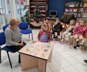 9 grudnia Filię nr 2 odwiedziły dzieci z Przedszkola Publicznego nr 4 z grupy „Wiewiórki”. Bibliotekarka rozmawiała z przedszkolaki z o tym , z czym kojarzy się zima, w co się można bawić o tej porze roku i dlaczego zimą nie jeździmy na rolkach. Jak należy zachowywać się zimą w górach i dlaczego śnieg jest brudny, pomimo, że biały. W dalszej części spotkania dzieci wybierały z rozsypanki obrazki związane z zimą i przyczepiały je do planszy.