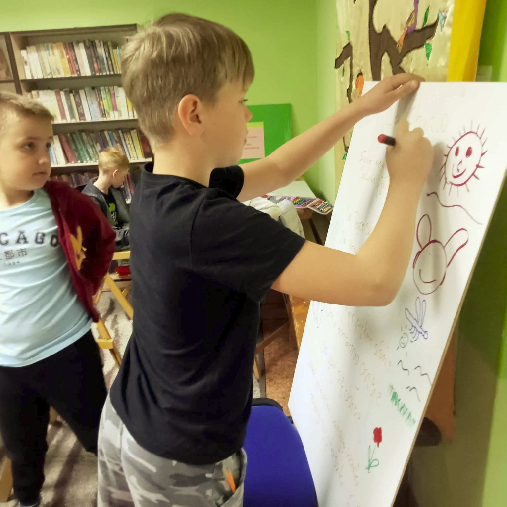 W dniach 20-22 listopada wspólnie z przedszkolakami i uczniami świętowaliśmy Międzynarodowy Dzień Praw Dziecka. We środę 20 listopada gościliśmy w Niepublicznym Przedszkolu „Mali Odkrywcy”, natomiast 21 listopada odwiedziła nas klasa 0 b, a 22 listopada klasa III d ze Szkoły Podstawowej nr 4 w Łęcznej. Przedszkolaki poznawały swoje prawa i obowiązki ze szczególnym uwzględnieniem prawa do zabawy – „Prawo do zabawy. Przygoda w starej kamienicy” ze zbioru „Opowieści o prawach dziecka” Marka Michalaka. Uczniowie klasy 0 b skupili się na prawie do prywatności – „Prawo do prywatności. Dronom wstęp wzbroniony” oraz na prawie do życia bez przemocy – „Prawo do życia bez przemocy. Dziewczynka w niebieskiej sukience”, natomiast uczniowie klasy III d na prawach do błędów i sukcesów – „Prawo do popełniania błędów. Kosmiczna podróż” oraz „Prawo do odnoszenia sukcesów. O tym, że trzeba próbować” Marka Michalaka z wyżej wymienionego zbioru. Dzieci pogłębiały swoją wiedzę poprzez lekturę, prezentacje multimedialne i piosenki. Dziękujemy za miłe spotkania w bibliotece i w przedszkolu. Zapraszamy do dalszej współpracy.