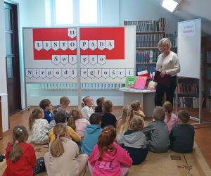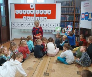 Z okazji zbliżającego się Święta Niepodległości , w dniu 7 listopada, w Filii nr 2 przeprowadzone zostały zajęcia edukacyjne dla dzieci z Przedszkola Publicznego nr 4 z grupy „Motylki”. Bibliotekarka przeczytała wiersz „Katechizm polskiego dziecka” Władysława Bełzy. Dzieci zarecytowały wiersz pt. „Powiewa flaga”. Następnie bibliotekarka rozmawiała z dziećmi o symbolach narodowych.