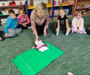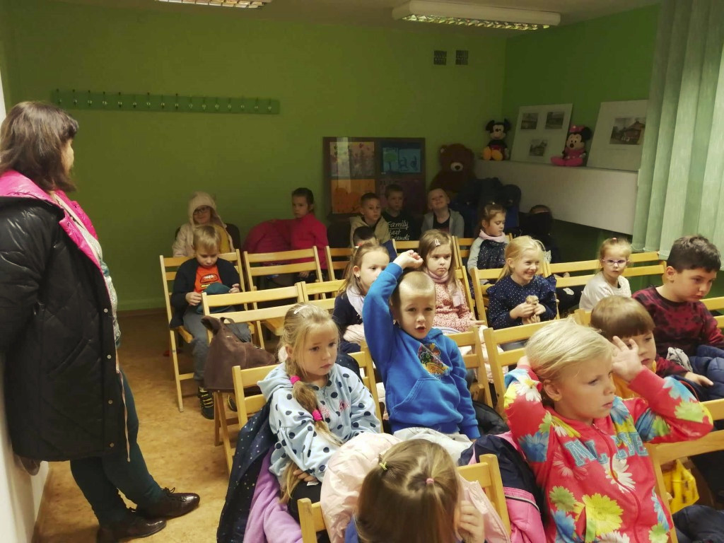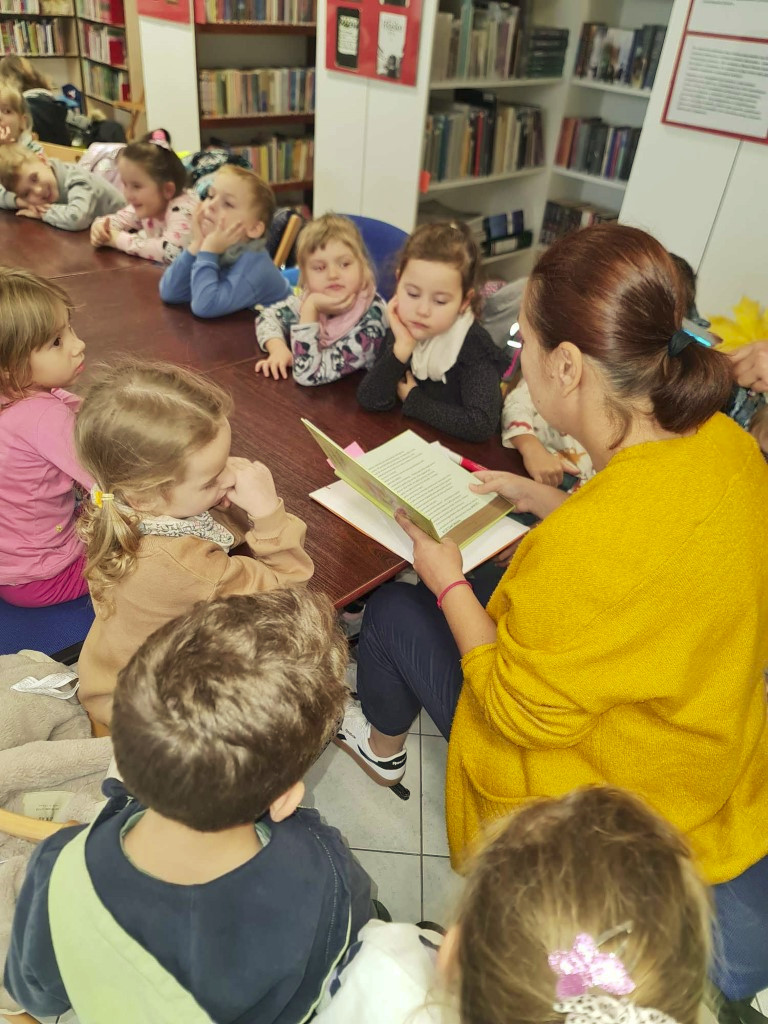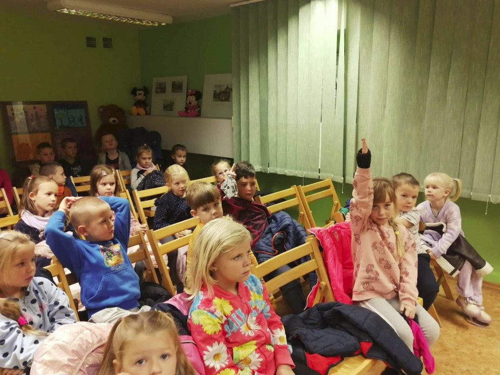 30 października Filię nr 3 odwiedziły dzieci z Niepublicznego Przedszkola „Mali Odkrywcy”. „Biedronki”, w towarzystwie misia, wysłuchały wierszy o jesieni, a następnie odpoczywały przy dźwiękach muzyki relaksacyjnej. Przedszkolaki obejrzały również bajeczkę o wiewiórce Nutce, która nie chciała się dzielić. Wiewiórka gromadziła zapasy na zimę, myśląc jedynie o sobie. Nie zważała na inne zwierzątka i ich potrzeby. Pewnego dnia Nutka była bardzo smutna, ponieważ nikt jej nie odwiedzał, ani nie bawił się z nią na polanie. Kiedy pewnego razu spotkała jeża, na początku nie zamierzała mu pomagać, ale w końcu postanowiła zmienić swoje zachowanie. Udzieliła mu pomocy w turlaniu wielkiego orzecha. Następnie zaprosiła go do domu na pyszny kompot truskawkowy. W ten sposób wiewiórka zyskała przyjaciela oraz nauczyła się dzielenia i współpracy. Dziękujemy Paniom i dzieciom za miłe spotkanie.