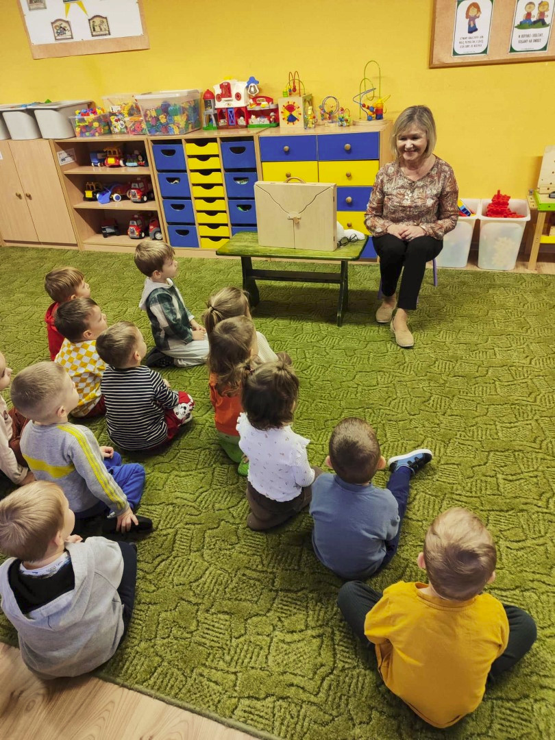 Po wakacyjnej przerwie bibliotekarka Ola z Filii Nr 1 odwiedziła najmłodszą grupę w Przedszkolu Mali Odkrywcy.