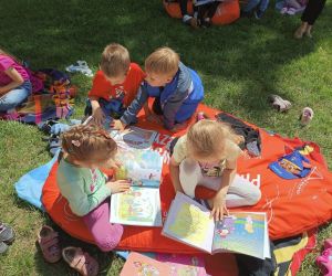 W słoneczne piątkowe popołudnie, 14 czerwca 2024 r., spotkaliśmy się z przedszkolakami z Przedszkola Publicznego nr 1 w Łęcznej na wspólnym czytaniu. Dużą atrakcją był fakt, iż akcja odbywała się na świeżym powietrzu, wśród pięknej zieleni skwerku przed Urzędem Miasta, gdzie zorganizowaliśmy przestrzeń czytelniczą.