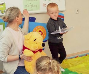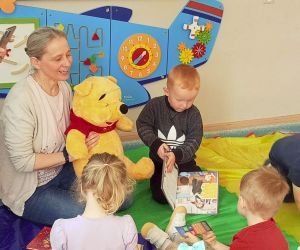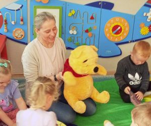 Z okazji XXIII Ogólnopolskiego Tygodnia Czytania bibliotekarka z Filii nr 3 odwiedziła dzieci ze Żłobka Mali Odkrywcy z grupy „ Biedronki” i „Sówki”. Podczas Spotkania z książką mali słuchacze wysłuchali głośnego czytania bajek o przyjaźni. Pani Ewa przeczytała przedszkolakom bajki: „ Miś – nasz przyjaciel ” oraz „ Magiczne słowa” Ewy Stolarczyk. Naszym milusińskim towarzyszył Miś Puchatek bohater bajek o przyjaźni i jedna z najbardziej ulubionych maskotek dzieci. Dzieci poznały podczas spotkania też inne książeczki o przyjaźni np.: „Kicia kocia i przyjaciele”, „Staś Pętęlka Najlepszy przyjaciel” oraz „Bajki o przyjaźni” pod red. Marty Stęplewskiej. Rozmawialiśmy o tym kim jest przyjaciel i jak magiczne słowa: „Proszę, Przepraszam, Dziękuję” mogą pomóc w relacji z przyjacielem. Na zakończenie wszyscy uczestnicy wzięli udział w zabawie z chustą tj. „fali przyjaźni” z Misiem Puchatkiem. Bibliotekarka zachęciła dzieci do odwiedzania biblioteki i wspólnego czytania książek z rodzicami i dziadkami. Zapraszamy do wypożyczania i czytania książek o przyjaźni i nie tylko…
