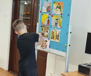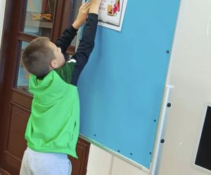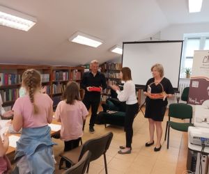 Na początku zajęć edukacyjnych uczniowie wysłuchali książki pt. „Wypożyczalnia skrzydeł” autorstwa Iwony Pietrzak-Płachty oraz malarki Matyldy Koneckiej, która wprowadziła w tematykę spotkania. Ta niezwykła książka o magii czytania zaprezentowana została za pomocą Teatrzyku Kamishibai, co bardzo zainteresowało uczniów.