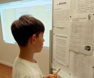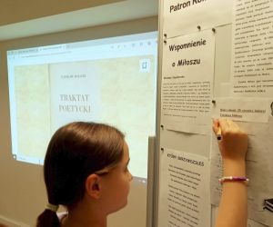 30 czerwca 2024 r. przypada 20. rocznica śmierci Czesława Miłosza. Ten znany i ceniony poeta jest również patronem roku 2024. Z tej okazji uczniowie klasy III b ze Szkoły Podstawowej nr 4 w Łęcznej wzięli udział w lekcji bibliotecznej w Filii nr 3. Nasi goście poznali najważniejsze wydarzenia z życia i twórczości autora oraz ciekawe wiersze i powieści poety. Pani Ewa opowiedziała dzieciom o wszechstronności polskiego noblisty i przeczytała uczestnikom wiersze pt.: „Przypowieść o maku”, „Sens”, „Przy piwoniach” oraz „ Który skrzywdziłeś”. Prowadząca przeplatała czytanie wierszy - prezentacją o Czesławie Miłoszu i opowiadaniem ciekawostek z życia autora. Prowadząca wspomniała też uczestnikom o znaczeniu powieści „Zniewolony umysł” i „Dolina Issy”. Na zakończenie uczniowie wzięli udział w quizie poświęconym życiu i twórczości poety.