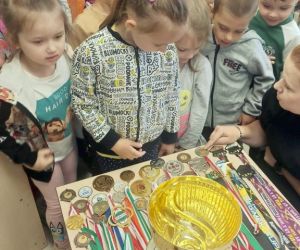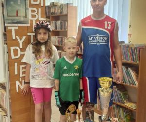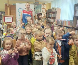 "Olimpijczyk ze mnie" - pod takim hasłem przebiegały zajęcia w Filii nr 1 w ramach obchodzonego Tygodnia Bibliotek i w nawiązaniu do ogłoszonego przez sejm Roku Polskich Olimpijczyków. W sportowych konkurencjach brały udział grupy : Zajączki i Stokrotki z Przedszkola nr 2. Atrakcją dla przedszkolaków było to, że zajęcia poprowadzili zaproszeni goście, którzy uprawiają swoje ulubione dyscypliny sportowe. I skoro zawitał do naszej biblioteki koszykarz z Lubelskiej Amatorskiej Ligii Koszykówki - były wrzuty do kosza, a młody bramkarz z sekcji piłka nożna z Akademii Górnik Łęczna chętnie bronił strzelanych goli przez naszych przedszkolaków. Pięknie prezentująca się amatorka jazdy na rolkach chętnie kozłowała z dziećmi piłką. Jak widać na jednym z załączonych zdjęć – wszyscy spisali się na medal.