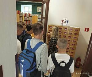 Uczniowie zwiedzili poszczególne agendy Biblioteki , zapoznali się z zasadami korzystania z księgozbioru oraz katalogiem online. Mieli również okazję obejrzeć kamienną umywalnię do rytualnego obmywania rąk, która zachowała się w budynku biblioteki z dawnego wyposażenia szkoły żydowskiej. Młodzież rozwiązywała krzyżówkę z hasłami dotyczącymi biblioteki i książek i poznała ciekawostki biblioteczne np: najstarszą , najmniejszą , największą czy najgrubszą książkę znajdującą się w naszej Bibliotece.