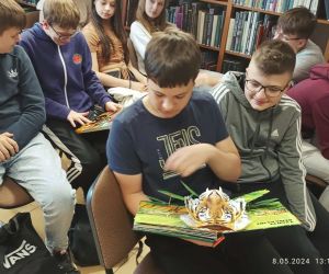 8 maja 2024 r., w Dniu Bibliotekarza, w Bibliotece Głównej przy ul. Bożnicznej 21 gościliśmy młodzież z klasy 7 e ze Szkoła Podstawowa nr 2 w Łęcznej wraz z wychowawczynią Panią Małgorzatą Brodzisz.