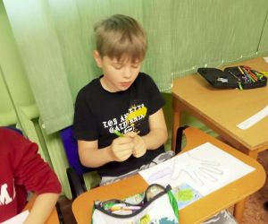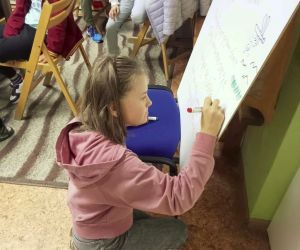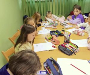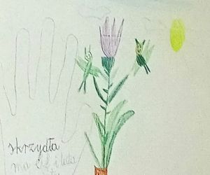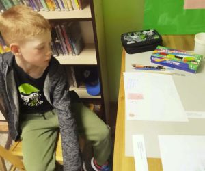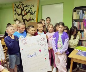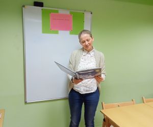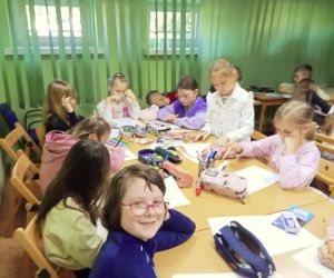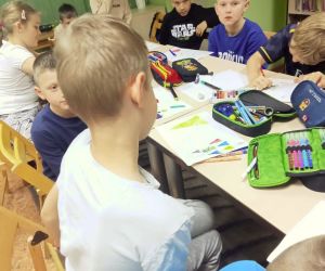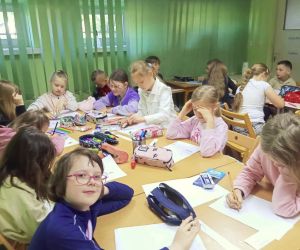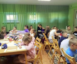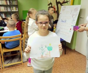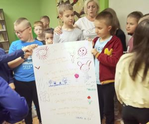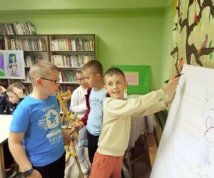„Piszę wiersze, maluję i tworzę mapy myśli - jestem kreatywny” pod takim hasłem w Filii nr 3, 9 maja 2024 r. odbyły się warsztaty literacko – plastyczne, w których wzięła udział klasa II e z wychowawczynią Ewą Żelechowską ze Szkoły Podstawowej nr 4 w Łęcznej. Z okazji Tygodnia Bibliotek nasi goście przenieśli się do naszej „bibliotecznej warsztatowni”, gdzie wspólnie z bibliotekarką tworzyli mapy myśli, pisali wiersze i malowali. Pani Ewa przeczytała dzieciom książkę „Wypożyczalnia skrzydeł” Iwony Pietrzak – Płachty i wiersz „Wiosenne słońce” – Tadeusza Kubiaka. Zainspirowani niezwykłym opowiadaniem i optymistycznym utworem poetyckim uczniowie sami napisali piękny wiersz. Na początku dzieci namalowały swoją dłoń, następnie pod kierunkiem pani Ewy poznały czym jest Haiku. Uczniowie czytali dowolnie wylosowane HAIKU i prezentowali je. W kolejnym etapie same przestąpiły do pisania własnych wyrazów, zdań i wersów. Prowadząca pokazywała dzieciom ciekawe ilustracje, które pobudzały wyobraźnię uczestników. Każdy uczeń mógł dowolnie napisać HAIKU i jednocześnie malować obok swoje skojarzenia. Kiedy uwolnione myśli poprowadziły zdolne ręce i umysły do napisania HAIKU każdy z małych poetów chętnie zaprezentował swój utwór. Praca szła naszym uzdolnionym gościom wyjątkowo sprawnie i kreatywnie dlatego nie poprzestaliśmy na HAIKU, a prowadząca zaproponowała dzieciom napisanie dłuższego utworu poetyckiego. Pani Ewa wymyśliła tytuł, a uczniowie napisali wszystkie wersy. Zaczęliśmy od mapy myśli poprzez Haiku a skończyliśmy na pięknym wierszu pt.: „ Ta chwila.” Aby dopełnić wspólnego dzieła uczniowie namalowali ilustracje do wiersza, które opisywały ich uczucia i skojarzenia z treścią powstałego dzieła. Warsztaty uwolniły kreatywne myślenie oraz talenty poetyckie i ilustratorskie naszych uczestników.