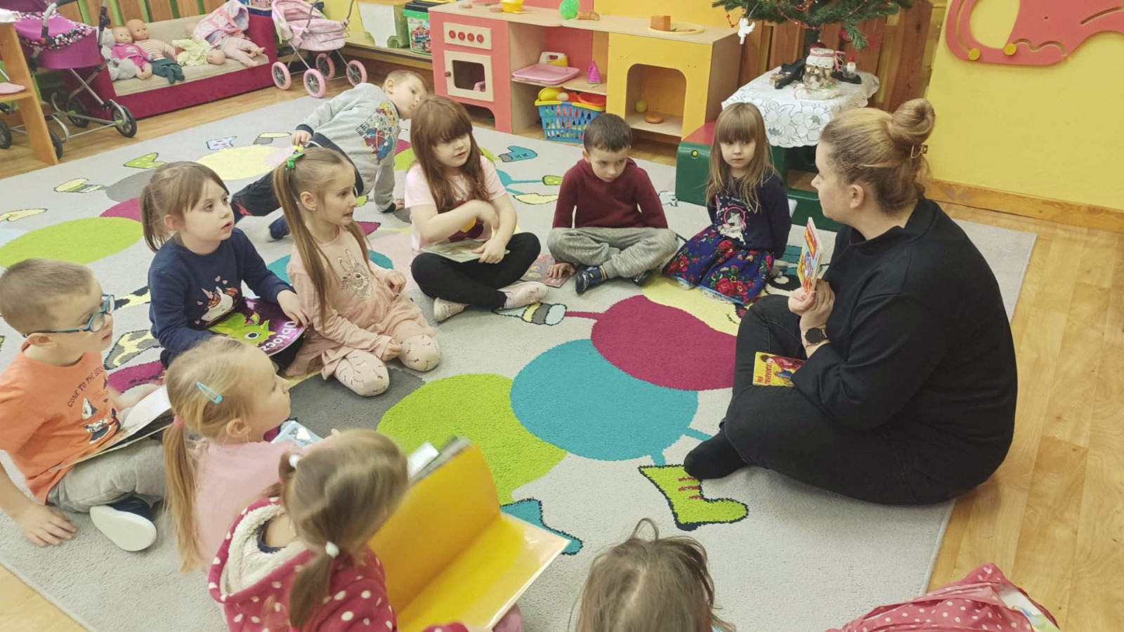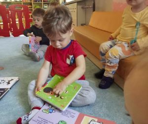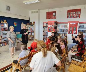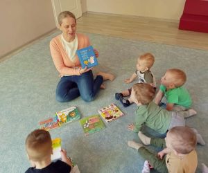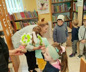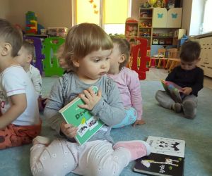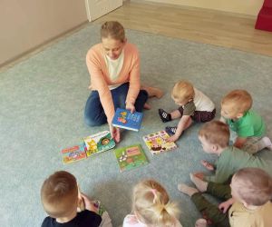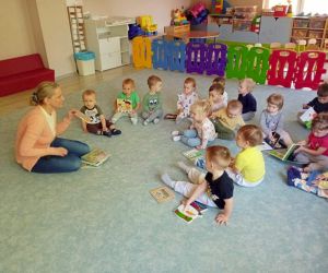 8 maja 2024 r. z okazji Tygodnia Bibliotek bibliotekarka z Filii nr 3 odwiedziła najmłodsze dzieci z grupy Kangurki ze Żłobka „Mali Odkrywcy.” Maleństwa wraz z wychowawczyniami przekazały pani Ewie życzenia i piękną laurkę z okazji Dnia Bibliotekarza za które serdecznie dziękujemy. Następnie bibliotekarka opowiedziała dzieciom co to jest biblioteka i co tam robimy. Mali czytelnicy wzięły udział w głośnym czytaniu wierszy Elizy Piotrowskiej pt.: „Zabawki”, „Jedzenie”, „Dom” i „Zwierzęta egzotyczne” i wysłuchały rymowanych utworów ze zbioru: „Pierwsza książka mojego dziecka”. Dzieci poznawały urocze zabawki, potrawy oraz zwierzęta żyjące w ciepłych krajach. Maleństwa z dużą ciekawością oglądały kolorowe egzotyczne zwierzęta oraz domek z kotem i pieskiem. Na zakończenie bibliotekarka zaśpiewała z dziećmi piosenkę „Pieski małe dwa” i zachęciła do odwiedzania biblioteki. Dziękujemy za zaproszenie i do zobaczenia.