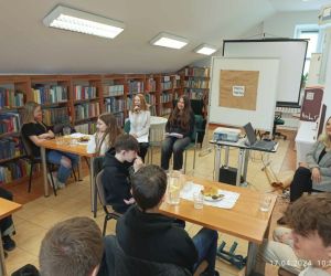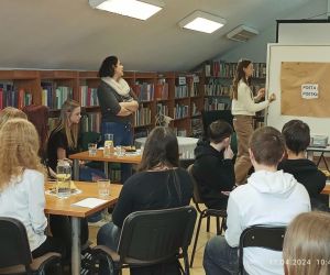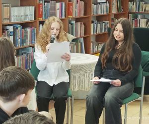 17 kwietnia 2024 roku Bibliotekę Główną odwiedziła klasa 7 C ze Szkoła Podstawowa nr 2 w Łęcznej wraz z wychowawczynią, Panią Jagodą Woźniak. Młodzież miała okazję wziąć udział w wyjątkowej lekcji języka polskiego zatytułowanej „Poeci są wśród nas”, która odbyła się w czytelni naszej Biblioteki. W trakcie zajęć dwie uczennice : Amelia Czarnucha i Zofia Grzesiak prezentowały koleżankom i kolegom z klasy swoje wiersze. Wszyscy z uwagą wysłuchali prezentacji i nagrodzili je głośnymi brawami.