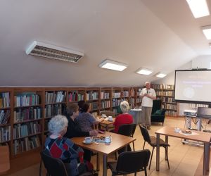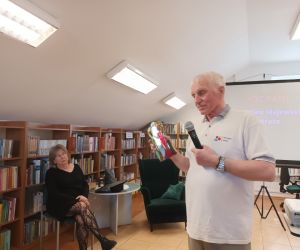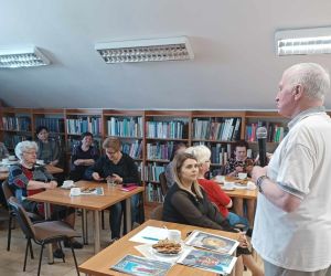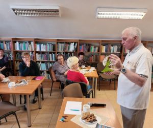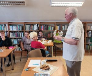 12 kwietnia w Bibliotece Głównej odbyło się otwarcie wystawy prac Pana Stanisława Majewskiego, lokalnego artysty, którego życiową pasją jest wykonywanie witraży. W spotkaniu uczestniczyli Seniorzy z działającego przy Bibliotece klubu „Aktywny Senior”. W trakcie wernisażu, artysta opowiadał m. in. o tym, skąd wzięło się jego zainteresowanie witrażami, kiedy powstał pierwszy witraż oraz ile czasu poświęca swojemu hobby.