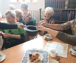 Dla przybyłych Seniorów, artysta przewidział miłą niespodziankę. Po zakończonym spotkaniu odbyło się losowanie nagród. Szczęśliwcy mogli zabrać ze sobą na pamiątkę przygotowane przez Pana Stanisława na tę okazję witraże.