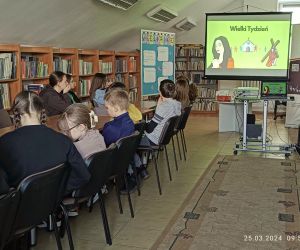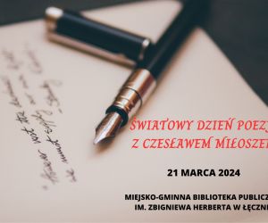 Nasza Biblioteka już od kilku lat włącza się w obchody tego święta. W związku z tym, że Sejm RP ogłosił rok 2024 Rokiem Czesława Miłosza, postanowiliśmy połączyć te dwa wydarzenia. 21 marca 2024 roku w Bibliotece Głównej zostało zorganizowane spotkanie, podczas którego prezentowana była poezja znanego, cenionego w Polsce i na świecie noblisty. Zaproszenie do czytania poezji Czesława Miłosza przyjął Przewodniczący Rady Miejskiej Pan Krzysztof Matczuk oraz młodzież z klasy 8 A i 7 C ze Szkoły Podstawowej nr 2 w Łęcznej wraz z wychowawczyniami Panią Jagodą Woźniak i Romą Szumiec. Przybyłych gości przywitała Dyrektor Biblioteki Monika Mazurkiewicz , która przeczytała wiersz pt.” Ale książki”. W trakcie spotkania został zaprezentowany film : „Andrzej Franaszek opowiada o Czesławie Miłoszu” oraz nagranie poety czytającego własny wiersz. Wszyscy obecni wysłuchali również muzycznej interpretacji wiersza Czesława Miłosza pt. „ Piosenka pasterska”, wykonanej przez cenionego artystę – Stanisława Soykę. Na koniec zostały rozdane dyplomy i podziękowania za udział i zaangażowanie w Światowy Dzień Poezji.
