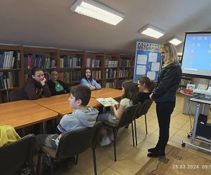 W dniach 18 i 22 marca, Bibliotekę przy ul. Bożnicznej 21 odwiedziły dzieci z grup: O B, O C i O D ze Szkoły Podstawowej nr 2 w Łęcznej. Uczniowie wzięli udział w zajęciach edukacyjnych dotyczących Świąt Wielkanocnych. Podczas zajęć dzieci wysłuchały książek: Małgorzaty Strzałkowskiej pt. "Wielkanoc" oraz "Wielkanocne pisanki" autorstwa Urszuli Kozłowskiej, oglądały film o tradycjach i zwyczajach wielkanocnych oraz słuchały piosenek. Był czas na zagadki wielkanocne, zabawę- czy to prawda, czy fałsz oraz oglądanie wystawy pn. "Moc pasji -Jajko- najważniejszy symbol Wielkanocy". Mamy nadzieję, zorganizowane w bibliotece spotkania przybliżyły dzieciom tradycje i zwyczaje Świąt Wielkanocnych.
