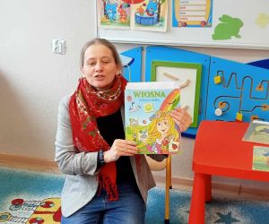 Na początku zajęć bibliotekarka rozmawiała z przedszkolakami o wiośnie. Przeczytała im wiersze o tej porze roku i Wielkanocy. Następnie wytłumaczyła, co to jest poezja, jak nazywa się osoba pisząca wiersze.W dalszej części dziećmi wysłuchały kilku różnych wierszy poetów klasyki dziecięcej. Niektóre z nich przedszkolaki „czytały” wspólnie z bibliotekarką.