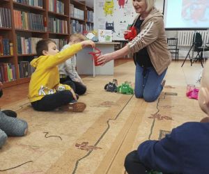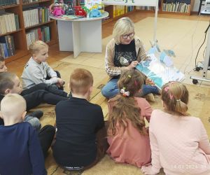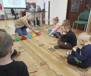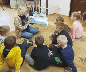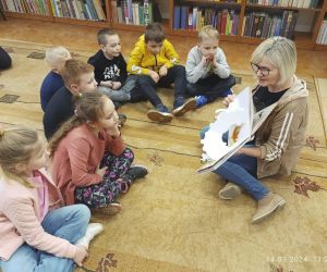 Dzieci bardzo aktywnie brały udział w zajęciach i odpowiadały na pytania bibliotekarki.