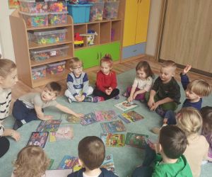 Tym razem bibliotekarka odwiedziła dzieci w przedszkolu. Każdy przedszkolak miał możliwość obejrzeć książki i wybrać tę z ulubionym bohaterem.