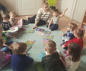 Poniedziałek to dzień wypożyczania książeczek przez grupę 2-3 latków z Przedszkola Mali Odkrywcy .