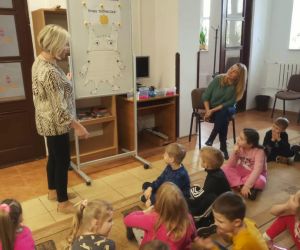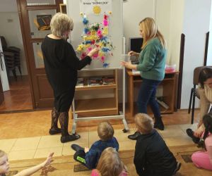 W trakcie spotkania dzieci wysłuchały bajeczek teatrzyku Kamishibai pt. „Kotka Psotka” oraz "Złotowłosa i trzy misie". Przedszkolaki z ogromnym zainteresowaniem śledziły przygody bohaterów ukrytych w magicznej skrzynce.