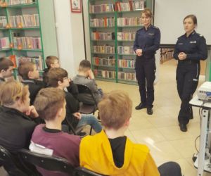 Dzieci podczas spotkania dowiedziały się także, z jakimi zagrożeniami mogą zetknąć się korzystając z Internetu. Policjantki omówiły problemy: kontaktu z niebezpiecznymi treściami czy osobami, przemocy rówieśniczej i uzależnienia od Internetu.