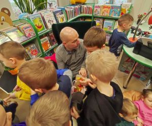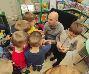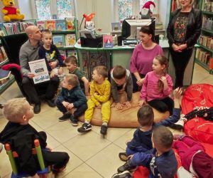 W dniu 5 marca 2024 r. spotkaliśmy się w Bibliotece przy ul. Bożnicznej 21, z dziećmi z grupy "Krasnoludki" z Przedszkole Publiczne Nr 1 w Łęcznej na głośnym czytaniu. Do czytania dzieciom zaprosiliśmy Pana Arkadiusza Wróbla, tatę Tymona. Pan Arkadiusz, który bardzo często przychodzi ze swoimi synami do biblioteki, z wielką przyjemnością przeczytał dzieciom książkę pt. „Tata Oli i piłkarska gorączka". Przedszkolaki z ogromnym zainteresowaniem słuchały przezabawnej opowieści o wyjątkowo śmiesznym tacie, który za bardzo angażował się w grę swojej córki i z tego powodu wynikały przezabawne sytuacje. Podczas spotkania był czas na słuchanie piosenek o książkach oraz wspólne rozmowy.