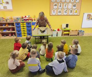 W dniu 23 lutego bibliotekarka z Oddziału dla Dzieci - Biblioteki przy ul. Bożnicznej 21- odwiedziła przedszkolaków z grupy „Skrzaty” w Przedszkole Publiczne Nr 1 w Łęcznej W trakcie spotkania dzieci wysłuchały bajeczki teatrzyku Kamishibai pt. „Kotka Psotka”. Przedszkolaki z ogromnym zainteresowaniem śledziły przygody Kotki –Psotki. Dużo emocji podczas czytania bajeczki - z magicznej skrzyneczki - wywołał fragment, w którym Kotka-Psotka wpadła do mąki i z czarnej, stała się biała. Spotkanie odbyło się ramach akcji „Koszyk z książkami”, każdy przedszkolak miał okazję wybrać sobie i wypożyczyć do domu książeczkę. Podczas wizyty u „Skrzatów” bibliotekarka zaprosiła dzieci do udziału w akcji Mała książka - wielki człowiek i wręczyła kolorowe zakładki z krasnalem. Do zobaczenia ponownie.