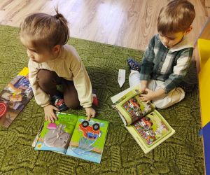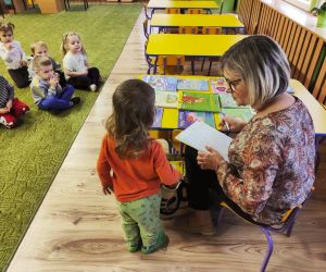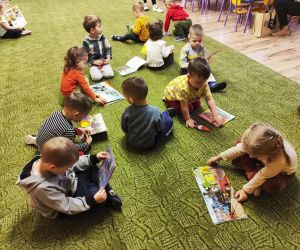 W dniu 22 lutego 2024 roku bibliotekarka z Filii nr 2 odwiedziła dzieci z grupy: ”Motylki” i „Wiewiórki” z Przedszkola Publicznego nr 4 w Łęcznej. W ramach akcji „Koszyk z książkami” dzieci samodzielnie wybrały sobie książeczki i wypożyczyły do domu. Na pożegnanie poczęstowały się cukierkami.