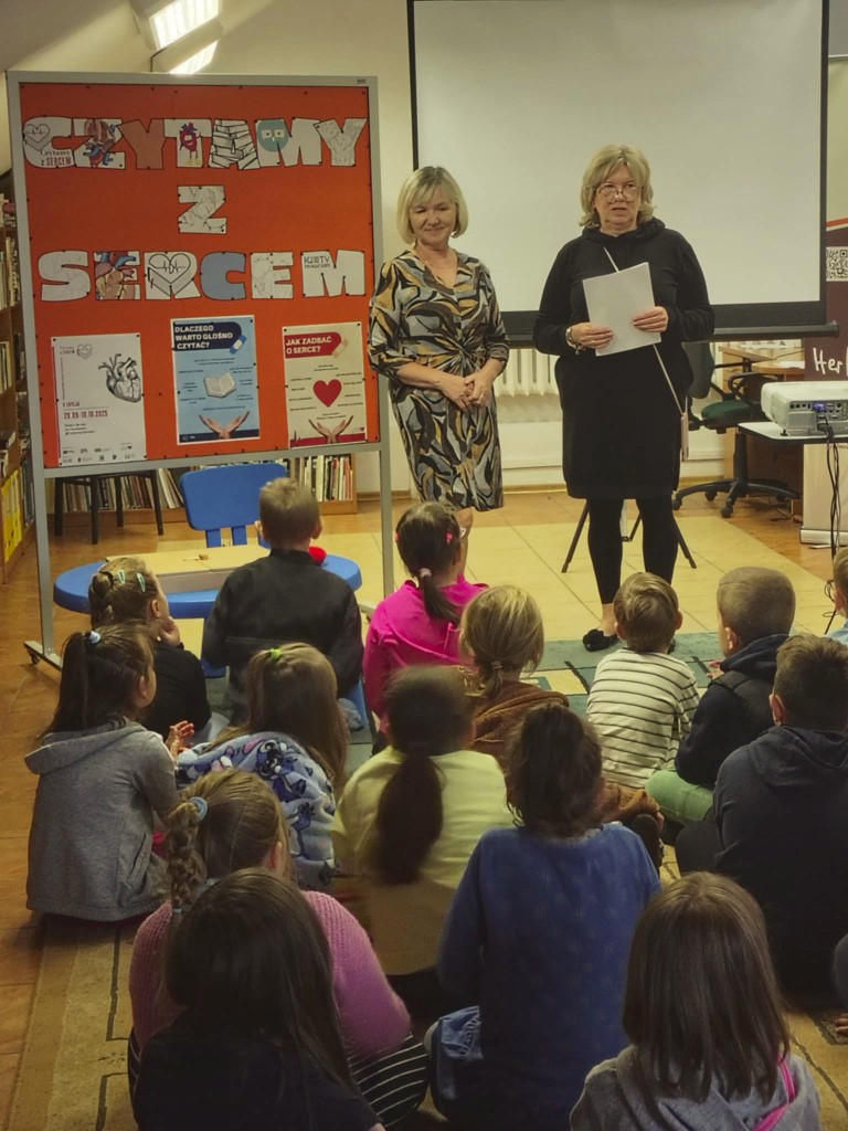 W wydarzeniu wzięła udział klasa II „b” ze Szkoły Podstawowej nr 2 w Łęcznej. Spotkanie rozpoczęła dyrektor biblioteki, pani Monika Mazurkiewicz, która w krótkim wystąpieniu przedstawiła ideę akcji „Czytamy z sercem”, podkreślając, że wydarzenie łączy w sobie dwa ważne święta: Ogólnopolski Dzień Głośnego Czytania Dzieciom oraz Światowy Dzień Serca. Przypomniała również, jak ważne jest dbanie o zdrowie – zarówno fizyczne, jak i emocjonalne – oraz jak wielką moc mają książki i czytanie z empatią.