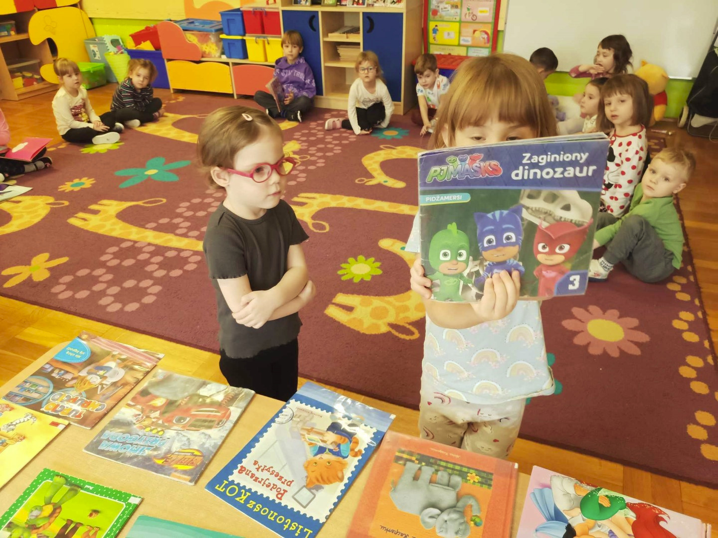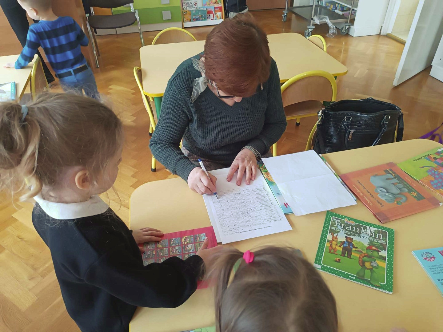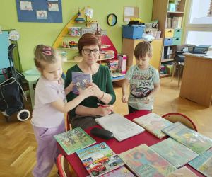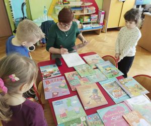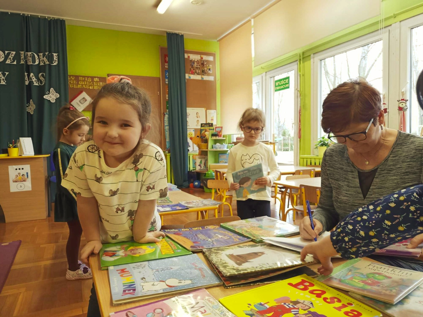 W ramach akcji „Koszyk z książkami” dzieci samodzielnie wybrały sobie książki i wypożyczyły do domu.