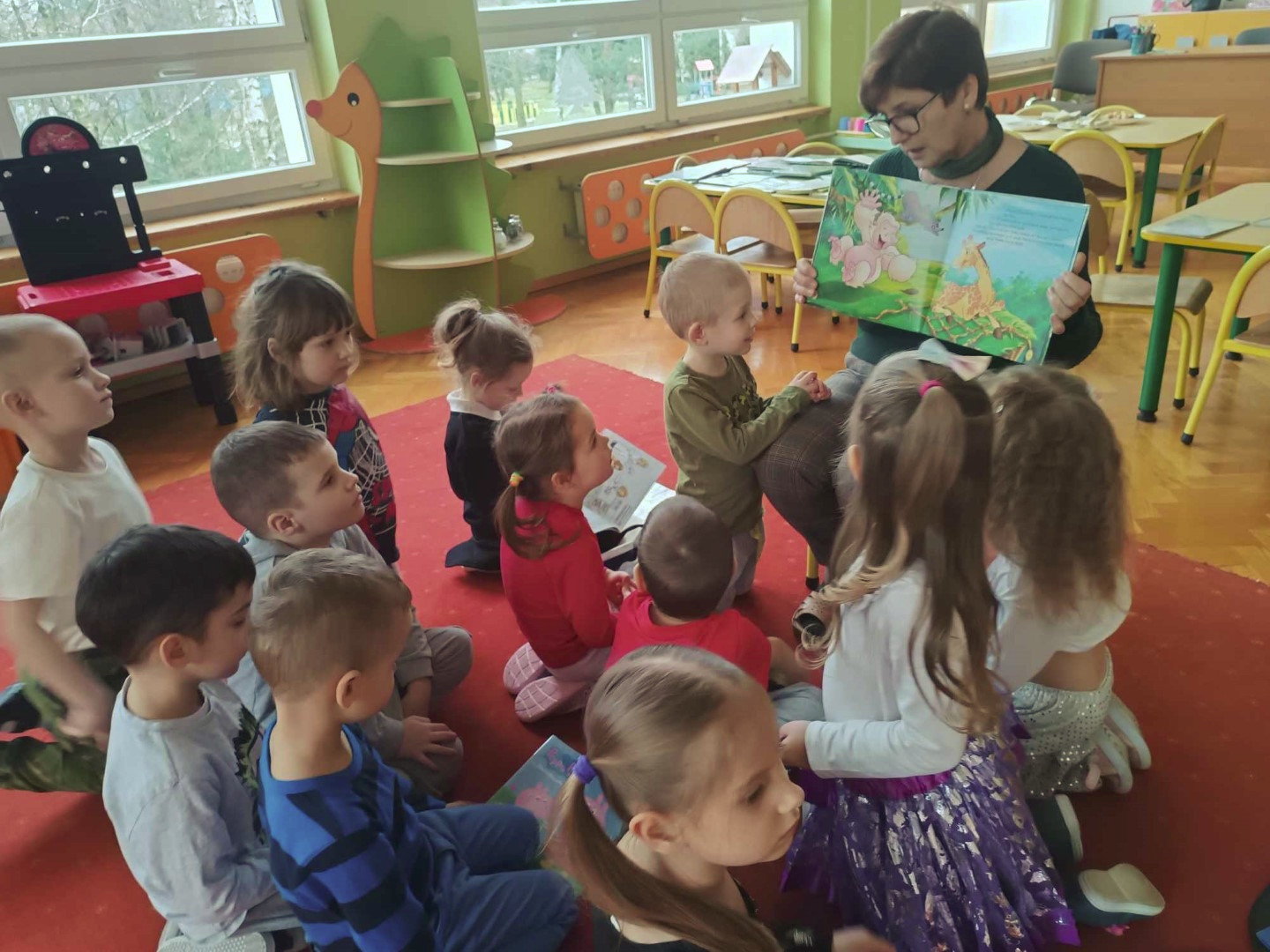 25 stycznia bibliotekarka z Filii nr 2 odwiedziła dzieci z grupy „Kotki” z Przedszkola Publicznego nr 4 w Łęcznej i przeczytała książkę Falcon C. Maldonado pt.: „Wspaniały zespół : książeczka dla dzieci o pomaganiu innym”. To historia gorylka Floky i jego przyjaciół ,którzy zapomnieli o wszystkich dzielących ich różnicach i połączyli siły, by razem nieść pomoc małej żyrafie.