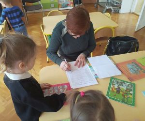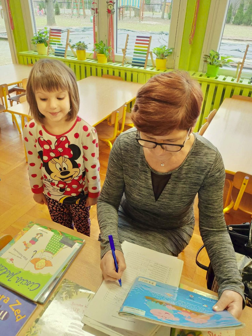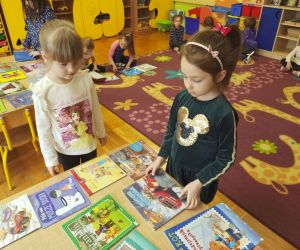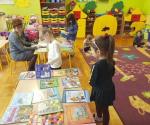 W ramach akcji „ Koszyk z książkami” przedszkolaki samodzielnie wybrały sobie książki i wypożyczyły do domu.