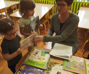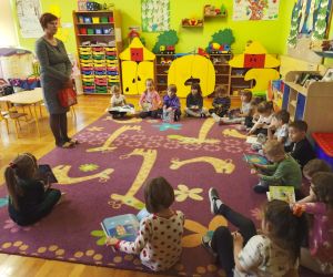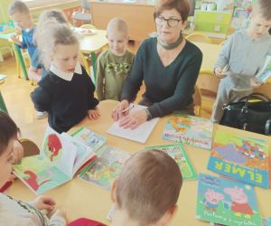 26 stycznia bibliotekarka z Filii nr 2 odwiedziła dzieci z grup: „Kubusie Puchatki”, „Króliki” i „Mądre Sowy” z Przedszkola Publicznego nr 3 w Łęcznej i przeczytała opowiadanie pt.: „Dzień Dziadka” z książki Elizy Piotrowskiej pt.: Ciocia Jadzia”. To dowcipnie napisane opowiadanie o cioci Jadzi i jej siostrzenicy zilustrowane przez autorkę. Ciocia Jadzia świetnie rozumie dzieci i zawsze potrafi znaleźć radę. Przebiera się i zamienia w dziadka by spełnić prośbę dziewczynki.