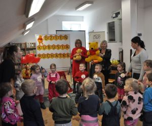 Z okazji Dnia Kubusia Puchatka bibliotekarka z Fili nr 1 miała zaszczyt odwiedzić Przedszkole Publiczne nr 2 w Łęcznej, by przeczytać dzieciom fragment książki A. A. Milne pt. „Kubuś Puchatek”. Przedszkolaki z grupy „Stokrotki” wraz z Panią Ewą Oliwiak przygotowały piękne wierszyki o najsłynniejszym misiu na świecie oraz zaprosiły wszystkie grupy z przedszkola do wspólnego świętowania .