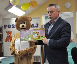 Na Misiowych urodzinach gościliśmy burmistrza Łęcznej – pana Leszka Włodarskiego, który przeczytał książkę autorstwa Wiesława Drabika pt. „Dzień Misia.