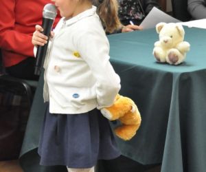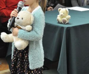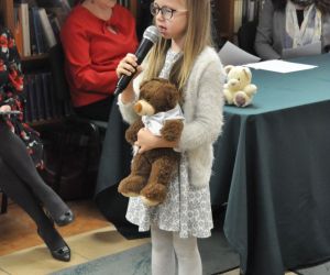 O historii powstania tej pluszowej maskotki, uczestnicy spotkania dowiedzieli się od Dyrektor Biblioteki – Moniki Mazurkiewicz, która opowiedziała, jak to z pluszowym misiem było.